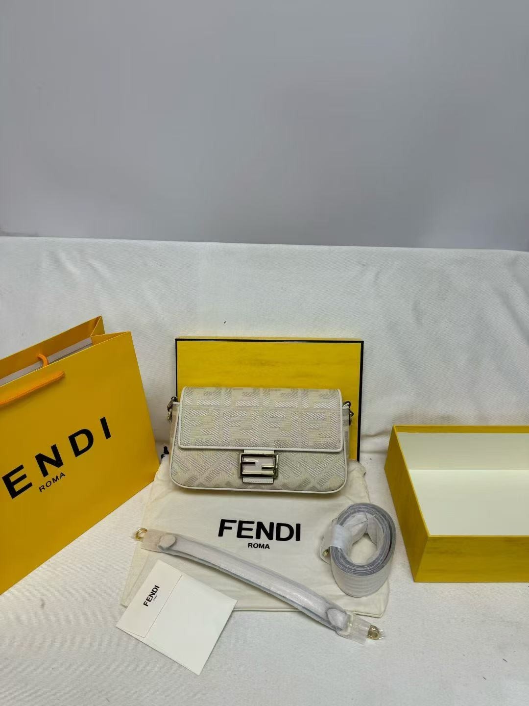 Fendi Baguette Canvas Shoulder Bag Women's White
