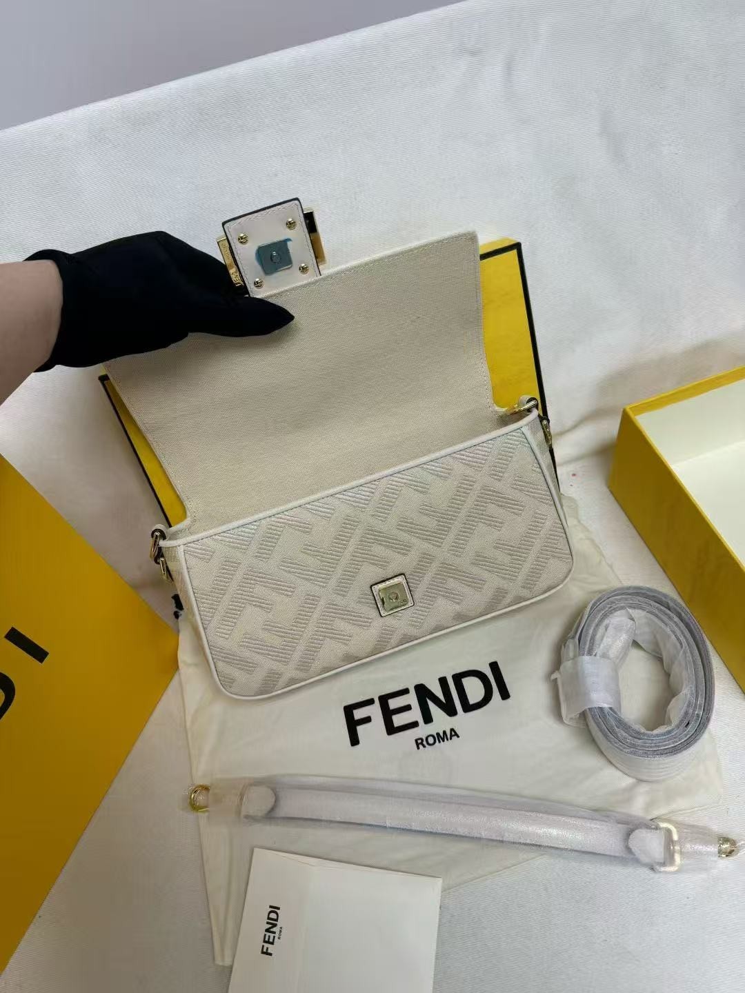 Fendi Baguette Canvas Shoulder Bag Women's White