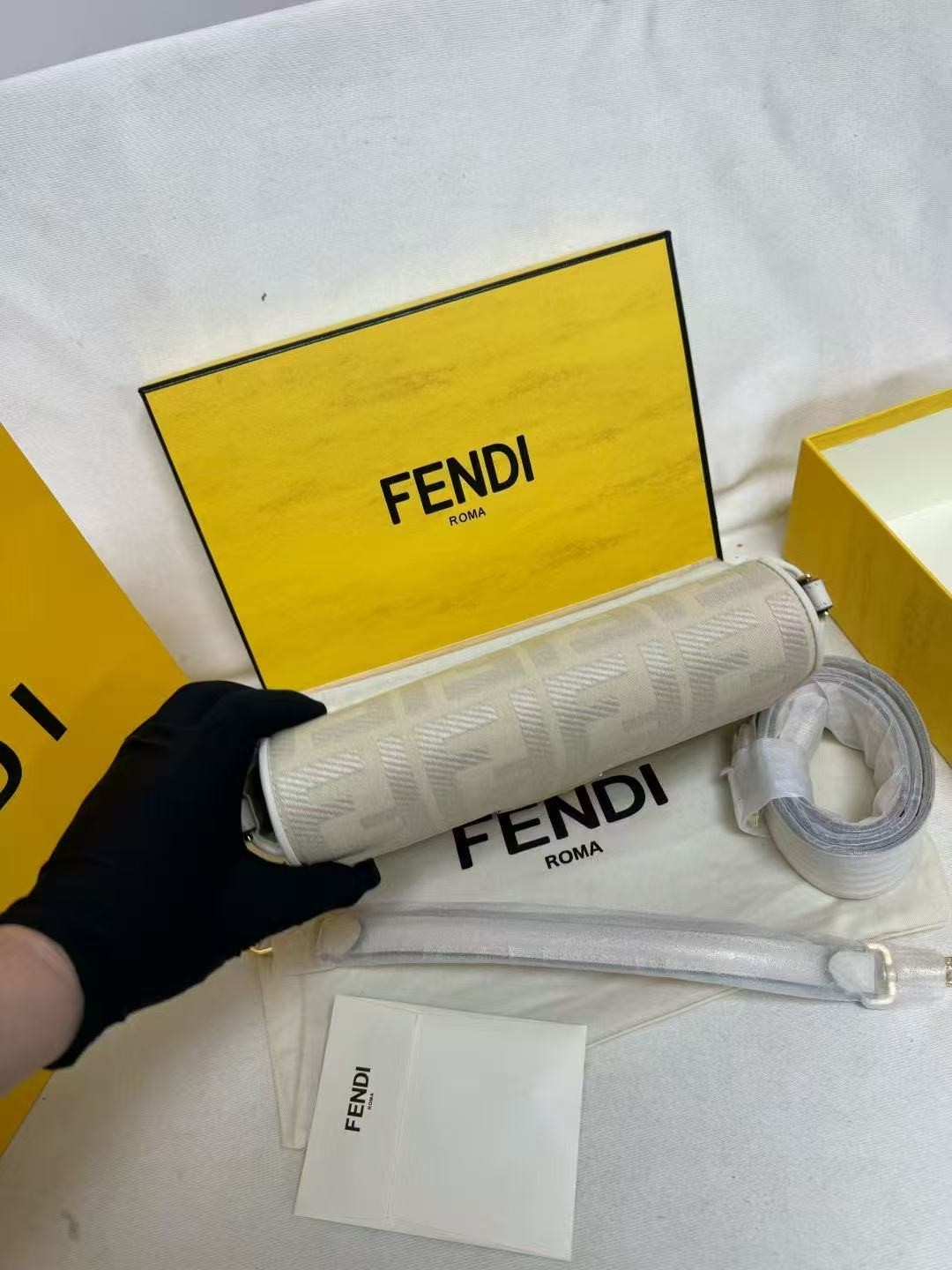 Fendi Baguette Canvas Shoulder Bag Women's White